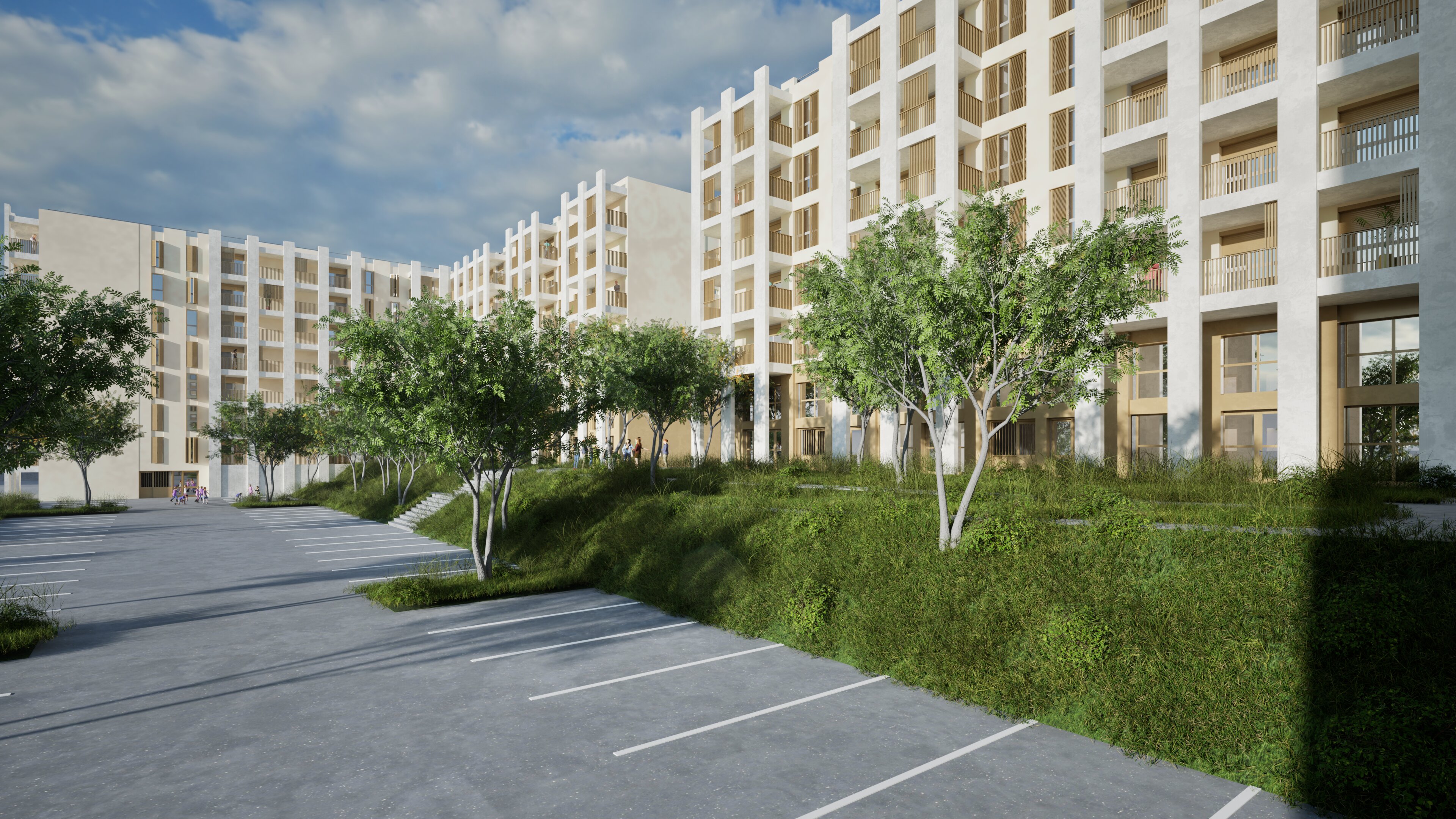 Réhabilitation durable et restructuration en site occupé sensible des bâtiments I, J et l’ilot D rassemblant 320 lomements sociaux en R+5