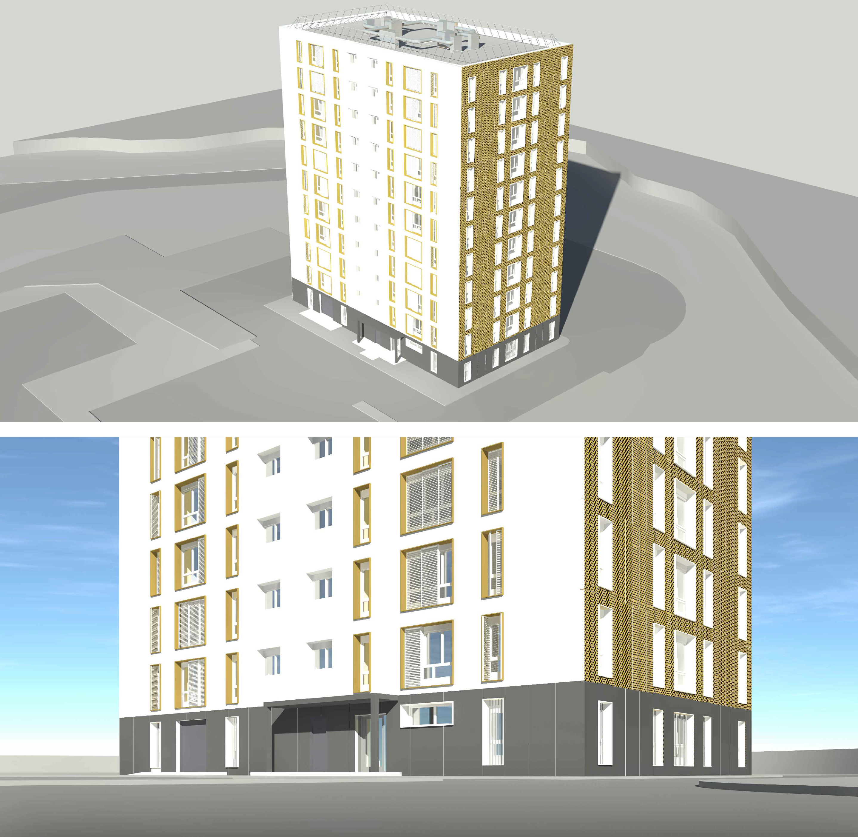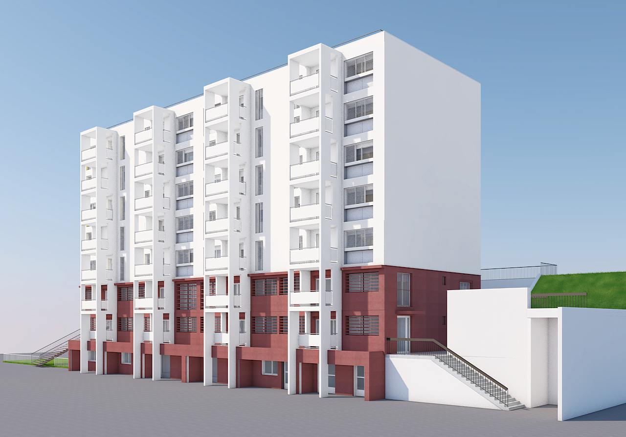 - Réhabilitation énergétique de 191 logements sur 7 bâtiments: Isolation par l’extérieur, restructuration complète des intérieures pour améliorer l’accessibilité